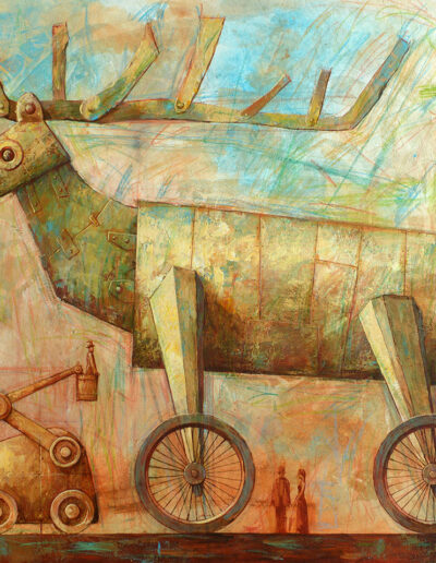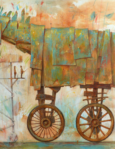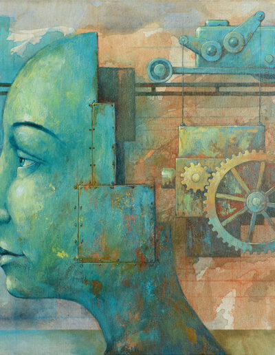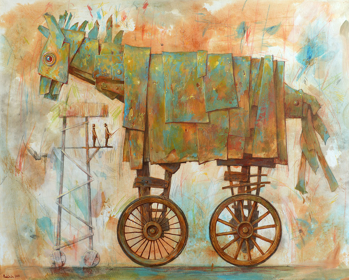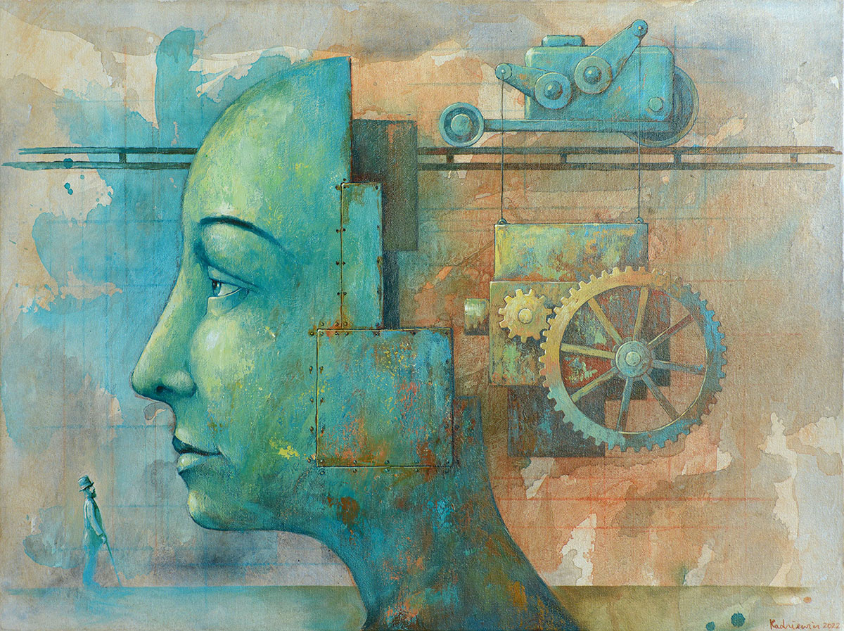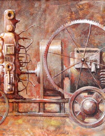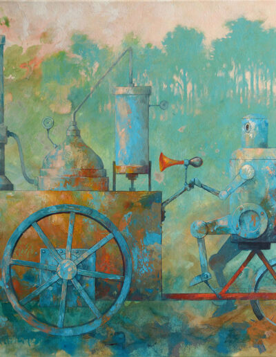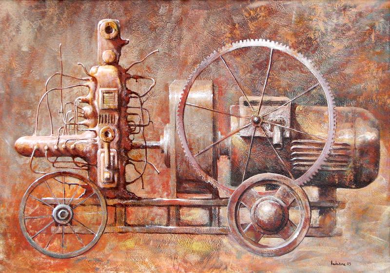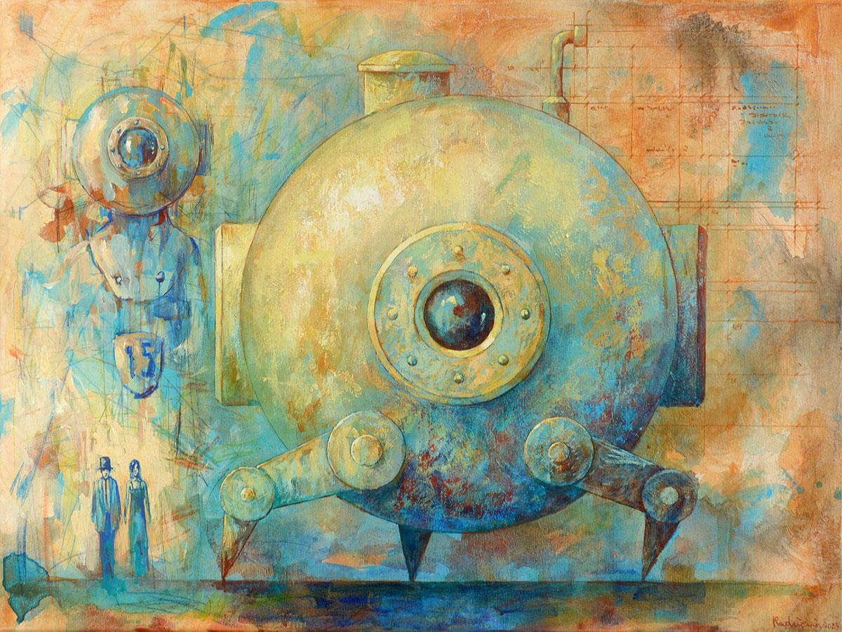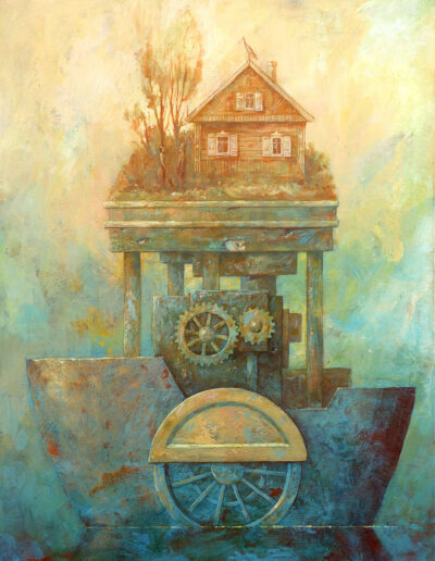 Wymyślam role jak w teatrze, mając nadzieję, że sztuka coś mi wyjaśni. Przenoszę się w nieistniejącą, bo funkcjonującą tylko na obrazach, wymyśloną rzeczywistość. Czasem są to światy dawno przeminione, pełne postaci ni realnych, ni zjaw. Maluję stare konstrukcje, maszyny, wydarzenia i ludzi, którzy właściwie nigdy nie istnieli.