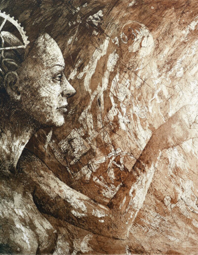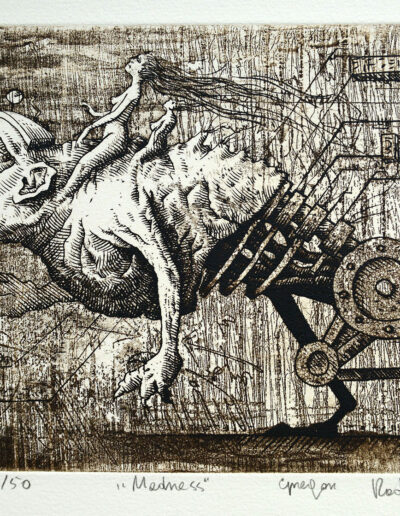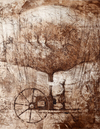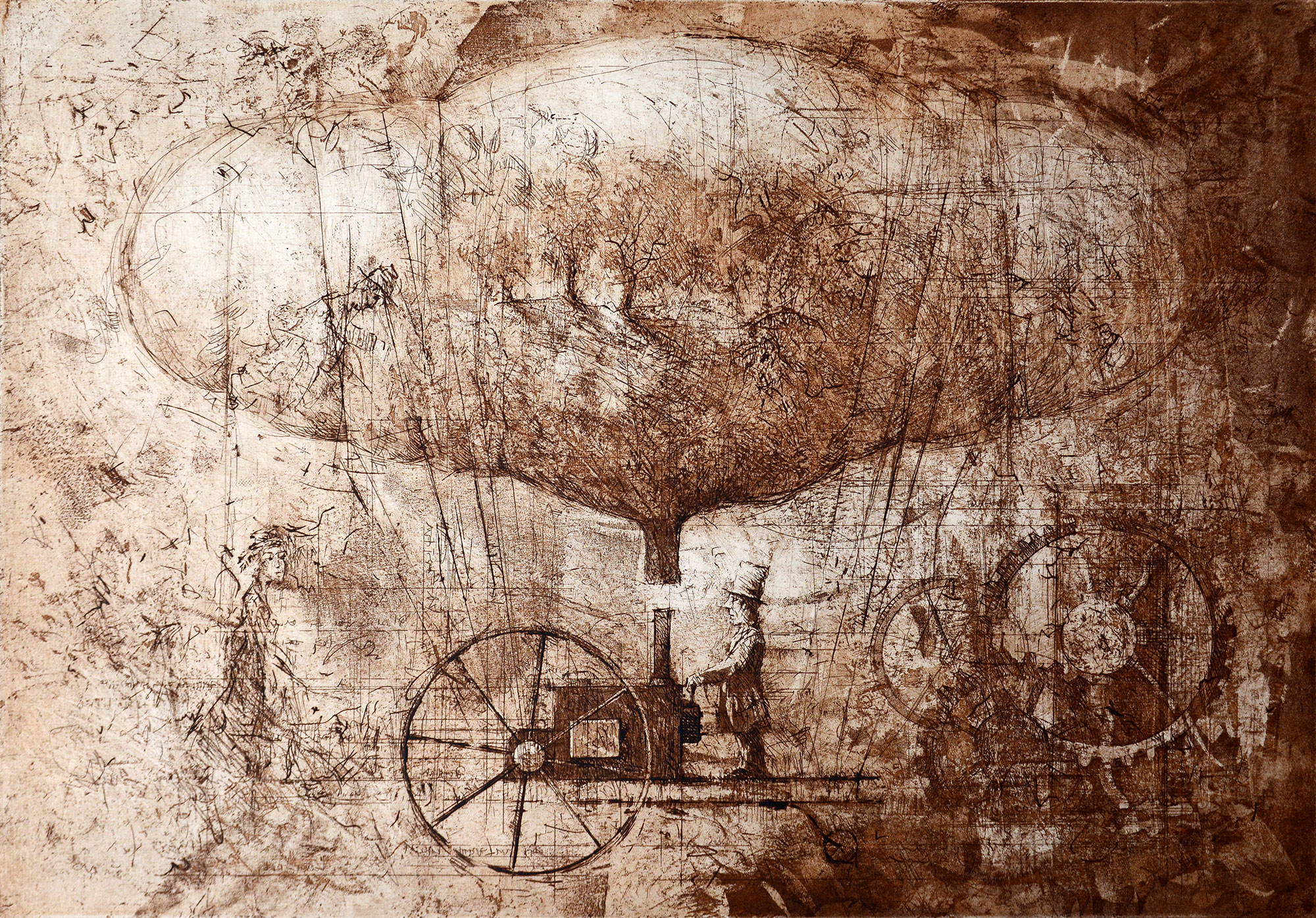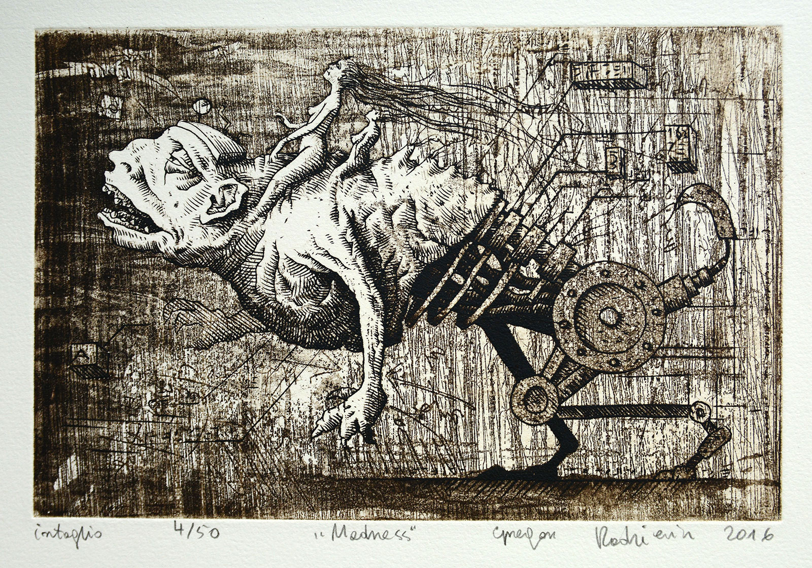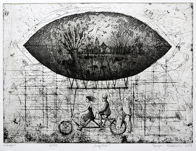 Grzegorz Radziewicz to artysta trochę niedzisiejszy – spokojny, opanowany i uporządkowany, wyglądający niekiedy jak dżentelmen w meloniku. Takie też są jego prace, które bazują na tradycyjnych technikach graficznych. Co więcej, uczył się sztuki u samego Mistrza, Eugeniusza Geta-Stankiewicza. Spędził wiele godzin na jego zajęciach w Domku Miedziorytnika, tuż przy wrocławskim rynku, zaledwie 50 metrów od Versus Gallery na Jatkach. Dzięki temu zdobył solidne podstawy warsztatowe. Jednocześnie jego indywidualny styl harmonijnie łączy klasyczne techniki z nowatorskim podejściem.