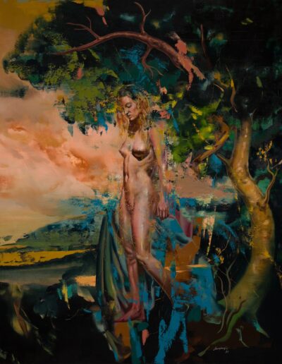 Malarstwo Jana Szczepkowskiego to przenikanie się różnych kierunków: figuracji, naturalizmu i neoromantyzmu. W swoich pracach często inspiruje się fotografią, zarówno archiwalną jak i stworzoną przez siebie, oraz malarstwem od XVII wieku do współczesności. Jego obrazy są pełne erudycji, nawiązujące do klasyki literatury, filozofii i historii sztuki. Szczepkowski umiejętnie łączy te różne dziedziny, tworząc przenikliwe wizje, które prowokują myślenie i zapraszają do dialogu. Jego prace mogą być traktowane jako medytacje nad kondycją ludzkiego umysłu i duszy, odsłaniając nasze wewnętrzne stany emocjonalne i dążenia. Malarstwo Jana Szczepkowskiego przenosi widza w tajemniczy świat pełen refleksji i nastrojów. Wnikliwie studiując jego dzieła, odkrywamy warstwy symboliki, które prowokują naszą wyobraźnię i zachęcają do kontemplacji. Szczepkowski mistrzowsko posługuje się technikami światła i cienia, tworząc nastrojowe kompozycje. Jego paleta kolorów jest subtelna, często skupiająca się na stonowanych odcieniach, co nadaje obrazom głębi i tajemniczości. Malarstwo Jana Szczepkowskiego jest ponadczasowe i uniwersalne. Jego prace mają moc oddziaływania na widza, zapraszając go do wniknięcia w głąb siebie i zastanowienia się nad głębszymi znaczeniami życia. To sztuka, która skłania do refleksji i poszukiwania, pozwala nam odkrywać nowe aspekty naszej egzystencji i wpływa na naszą percepcję świata.